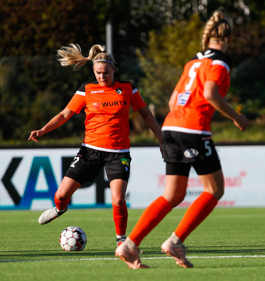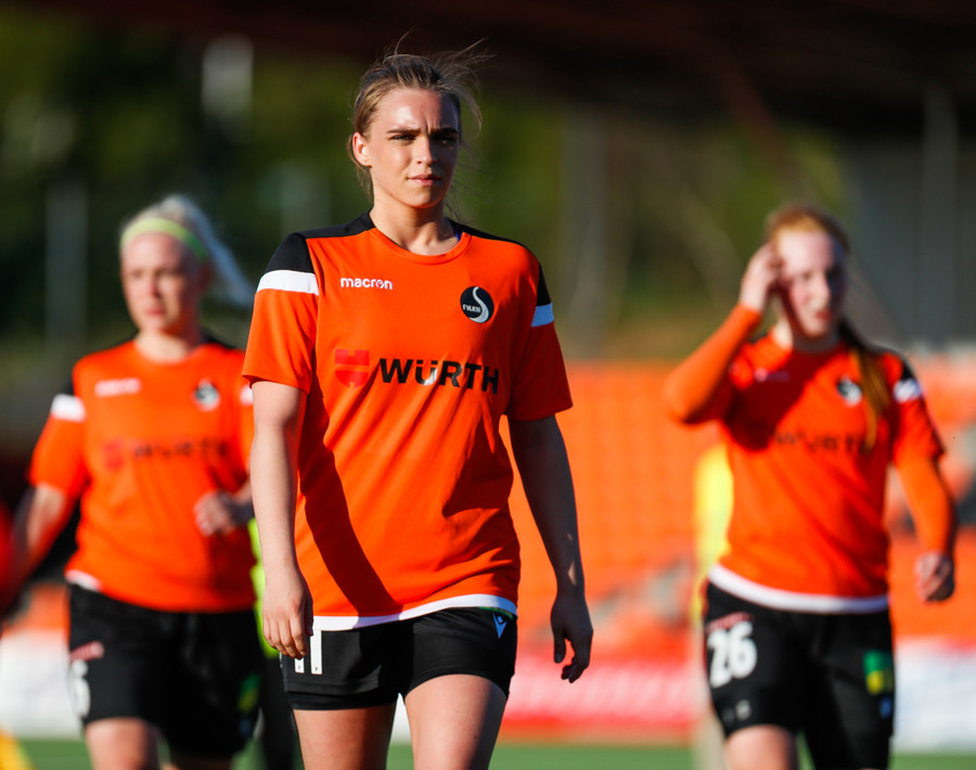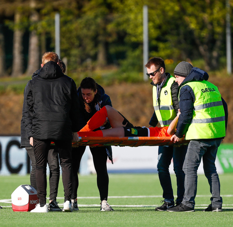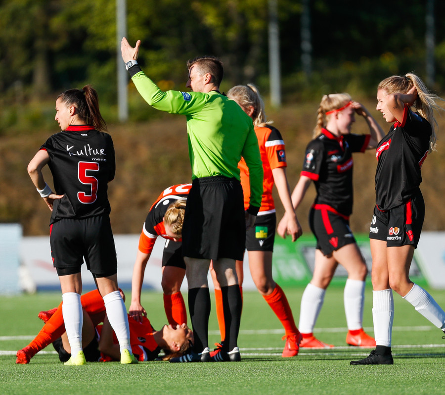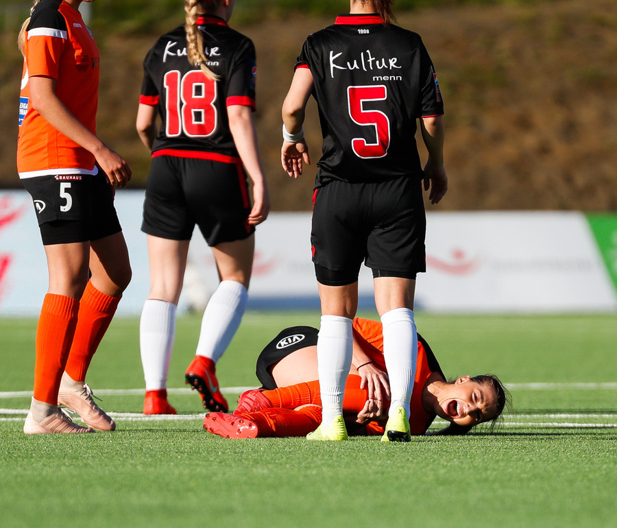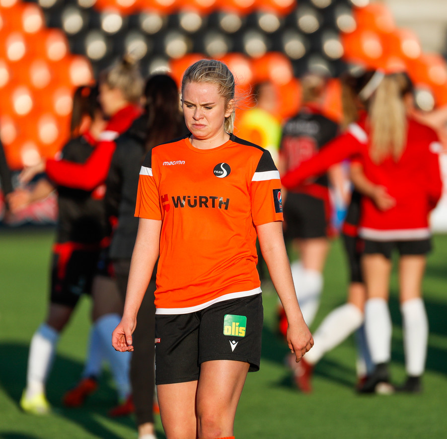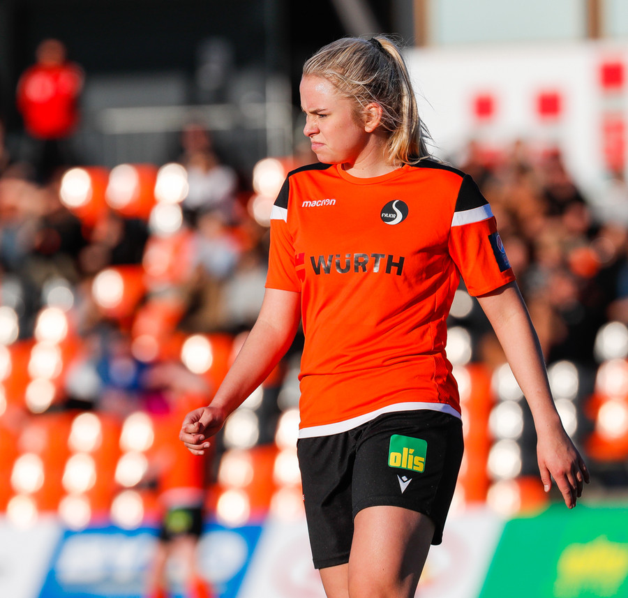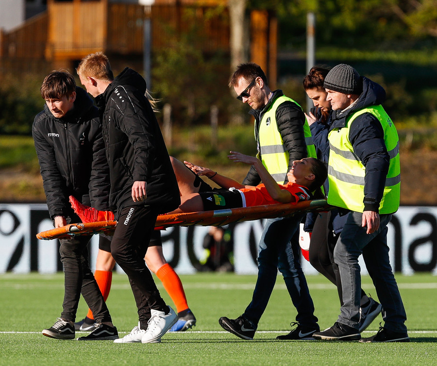 Langt stopp og Chloe Froment er borin af velli eftir aðhlynningu, virtist mistíga sig illa þegar hún fór í bolta á miðjunni. Virtist vera öklinn að gefa sig, hrikalega svekkjandi fyrir hana en hún var að byrja sinn fyrsta leik eftir meiðsli.
