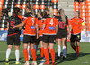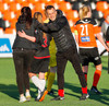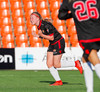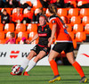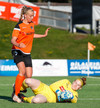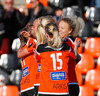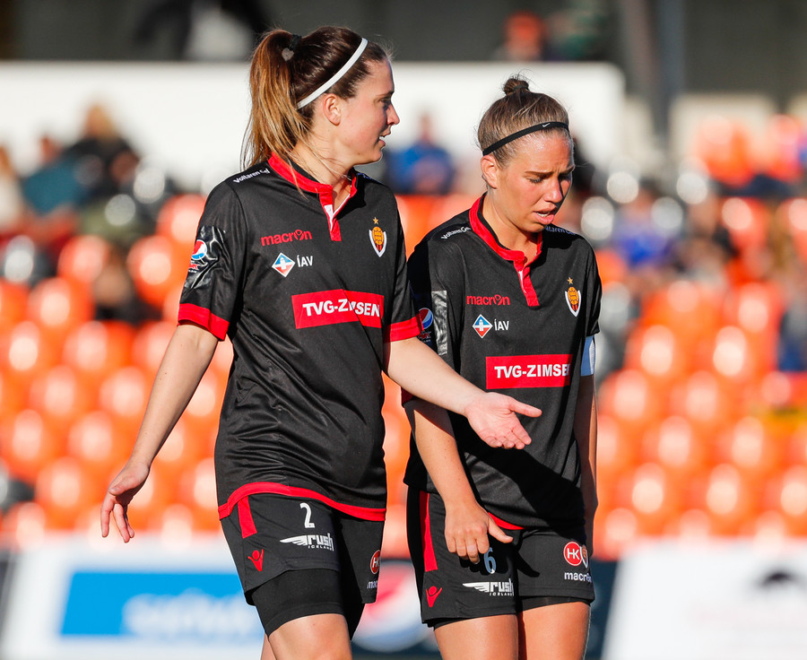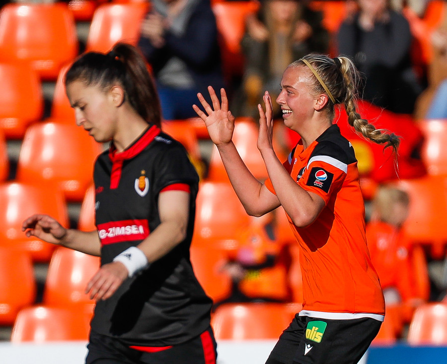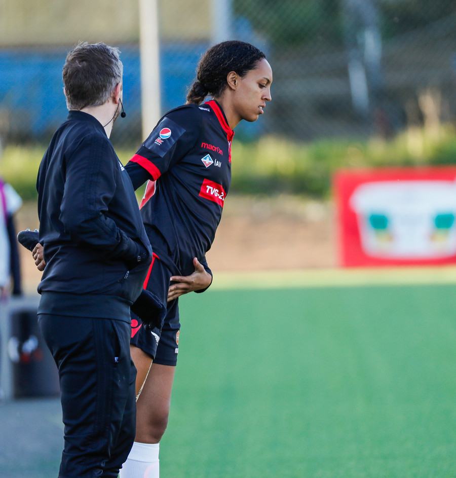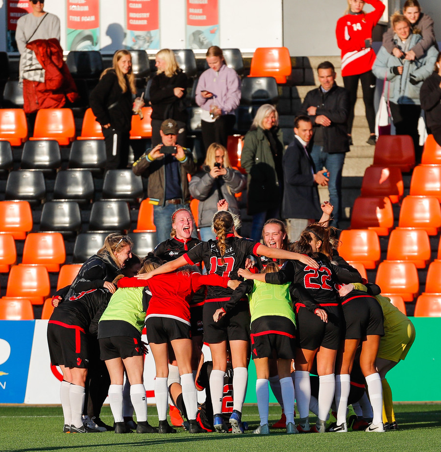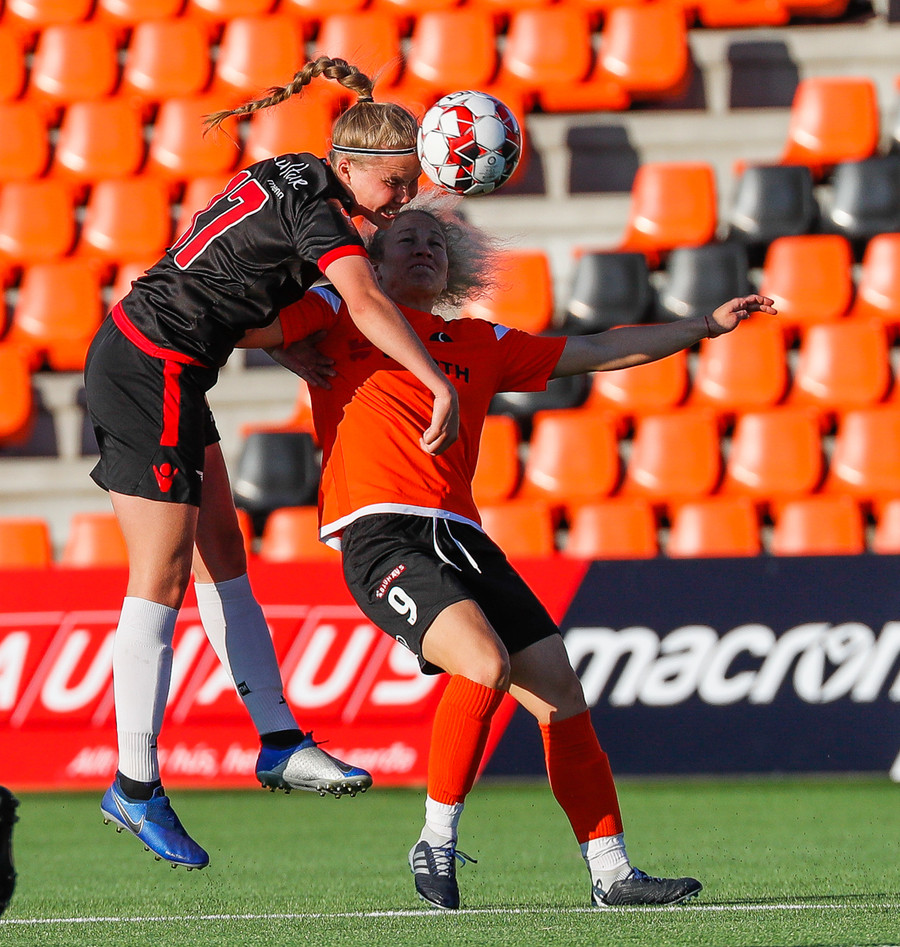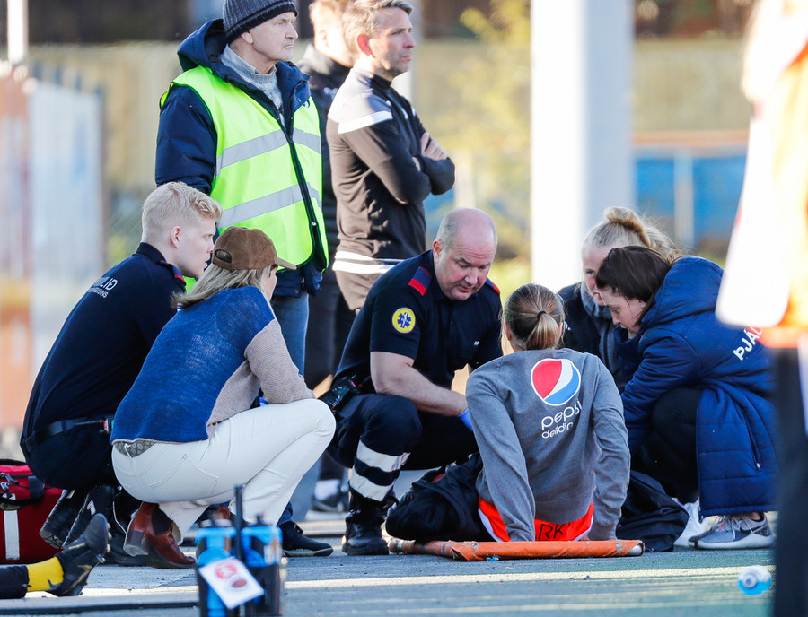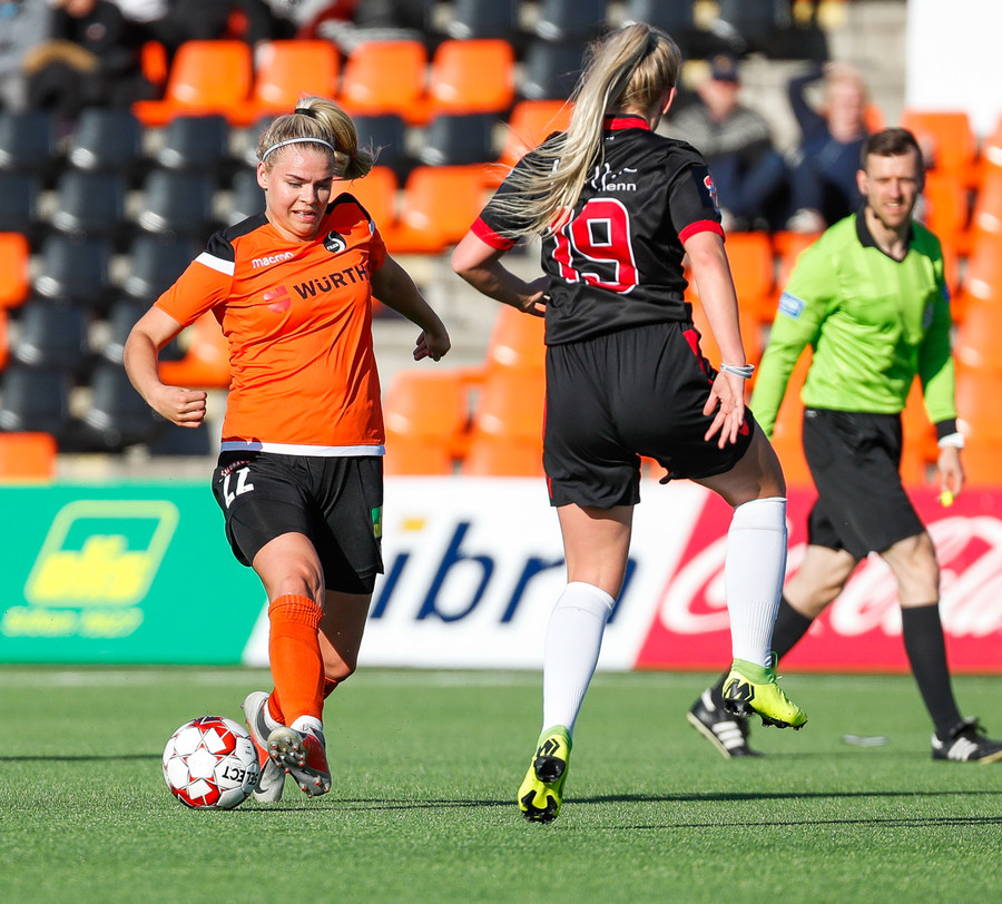 Langt stopp og Chloe Froment er borin af velli eftir aðhlynningu, virtist mistíga sig illa þegar hún fór í bolta á miðjunni. Virtist vera öklinn að gefa sig, hrikalega svekkjandi fyrir hana en hún var að byrja sinn fyrsta leik eftir meiðsli.