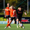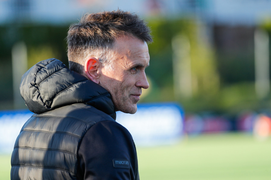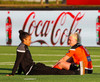 Sólin að hafa áhrif og leikmenn og blaðamenn, annar hver maður að skýla augunum með hendi.
