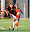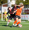 Fylkiskonur byrjaðar að senda langa bolta beint fram við hvert tækifæri og vörn HK/Víking stendur það af sér.