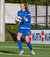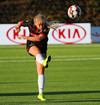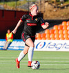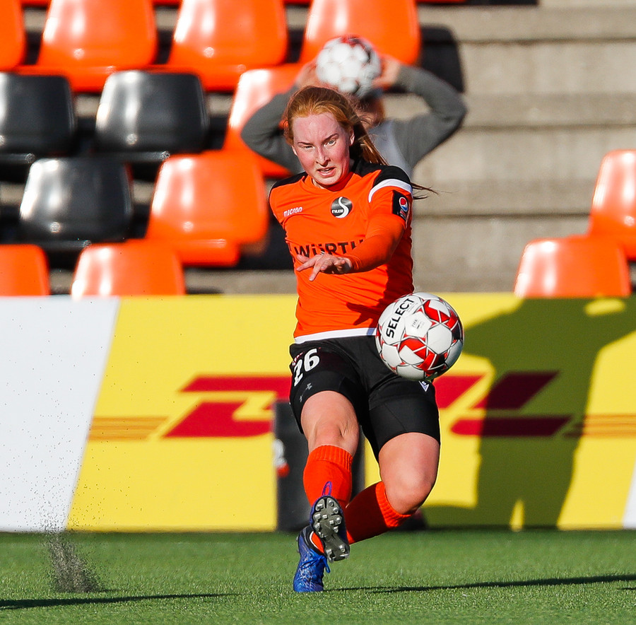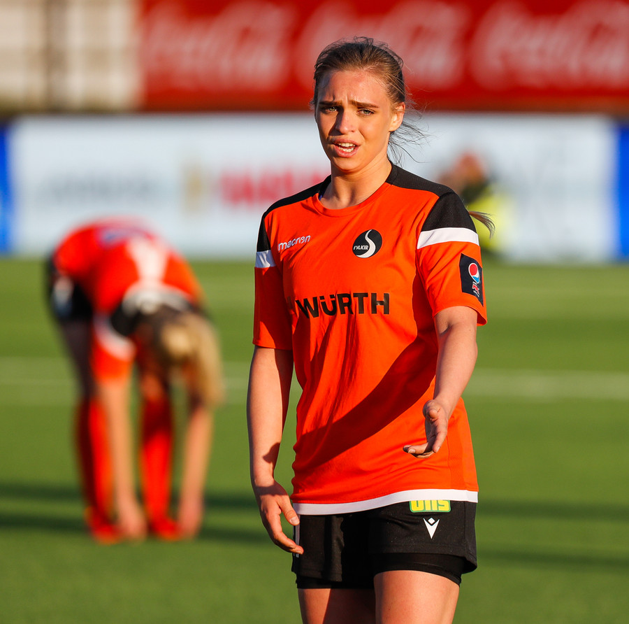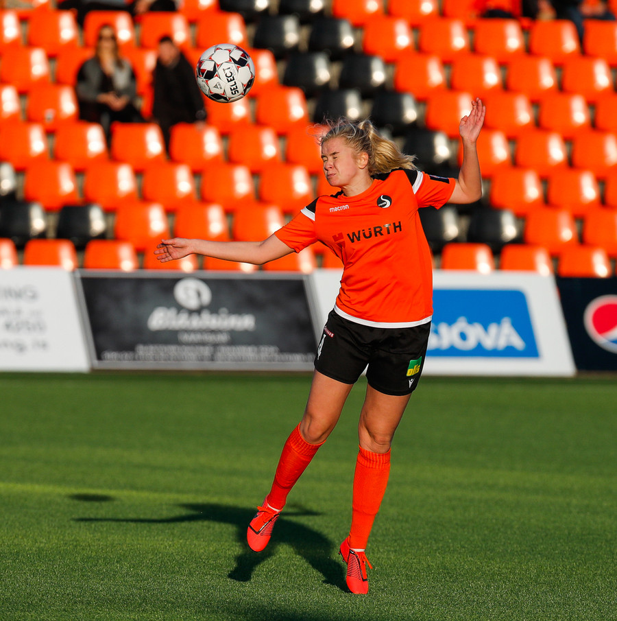 Karólína sendir bolta inn í teig eftir aukaspyrnu en hann var alltof hár og yfir endalínu.