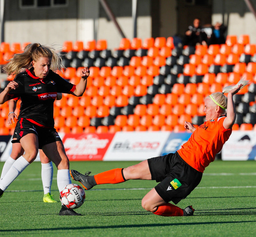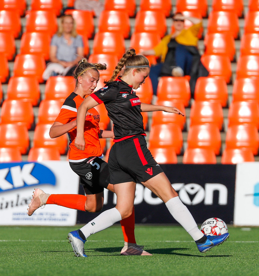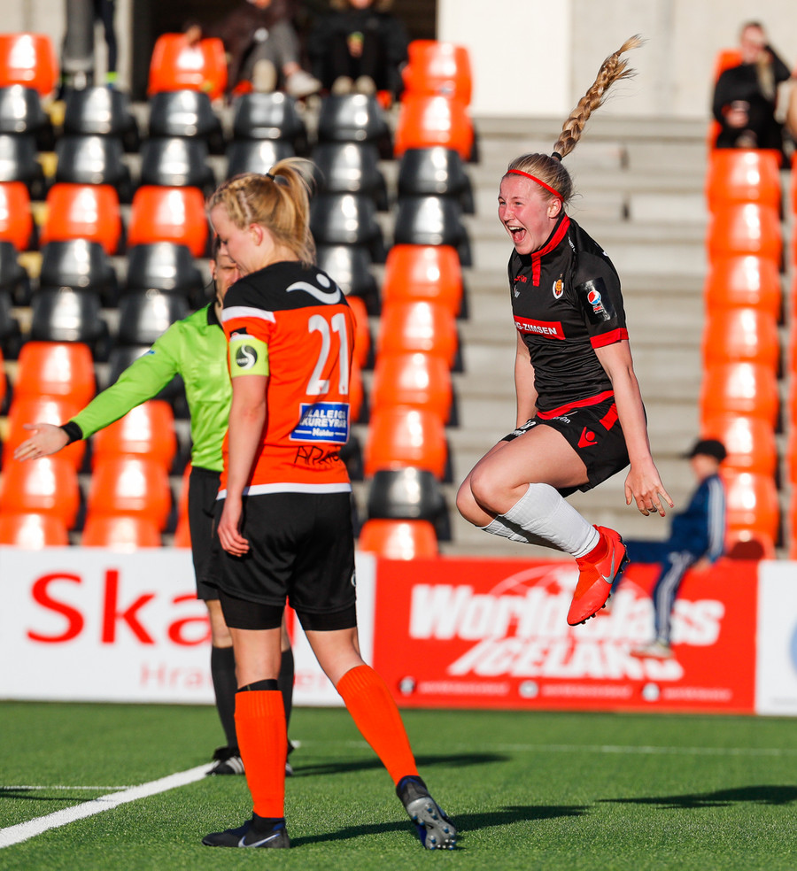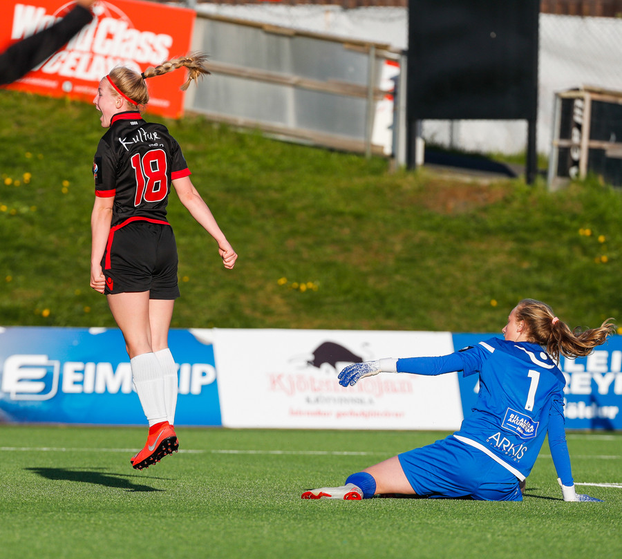 Hulda og Ída eru næstum búnar að endurskapa markið rétt fyrir hálfleiksflautið en varnarmaður nær tæklingu á síðustu stundu. Hörkuskemmtun, staðan gæti vel verið 2-2.