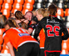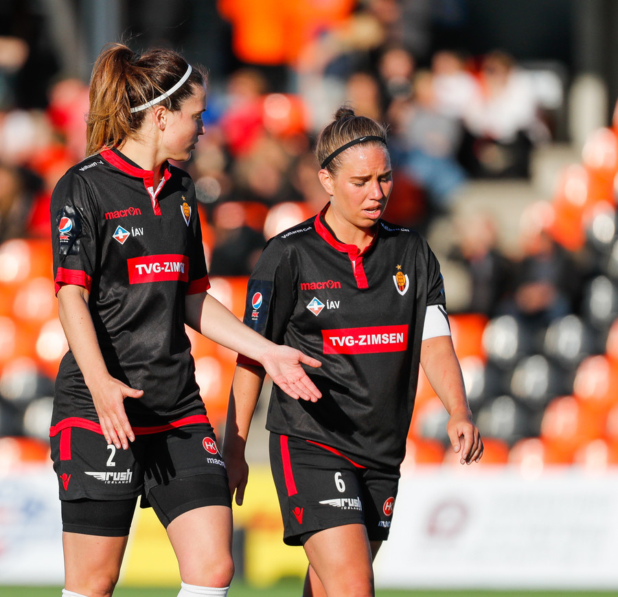 Isabella fær tiltal frá dómara eftir brot á Sæunni, næsta brot verður líklega spjald hjá henni.