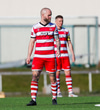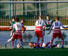 Ásgeir Marteins tekur spyrnuna og Binni Jó nær skallanum en laflaust beint á Gulla.