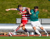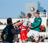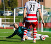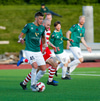 HK brunar beint upp í sókn og Kári Péturs kemur með góðan bolta inná teiginn sem Binni Jó skallar yfir markið.