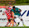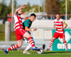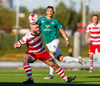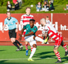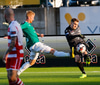 Arnar Freyr fer í algjört skógarúthlaup en er á undan Brynjólfi í boltann í boltann, snertingin var slök og hann lendir í vandræðum gegn Hendrickx upp á miðjum vellinum og setur hann í innkast.