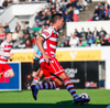 Gaui sendir boltann langt út á Hendrickx sem reynir skot í fyrsta en það er langt framhjá.