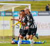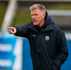 Hann neglir boltanum fast niðri á Óttar sem lyftir boltanum svo í átt að markinu en ofan á þaknetið.