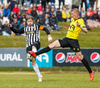Arnór Sveinn bombar boltanum frá hægri og út til vinstri þar sem Óskar tekur fyrstu snertinguna beint framhjá Halli sem er skilinn eftir og Óskar brunar að markinu og reynir skotið með hægri sem var afleitt og fer laflaust og langt framhjá.