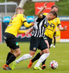 Atli Sigurjóns brýtur klaufalega á Alberti úti vinstra megin, Tryggvi Hrafn ætlar að taka þessa spyrnu.
