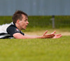 Pálmi Rafn sendir boltann í hægra hornið og Árni í vitlaust horn.