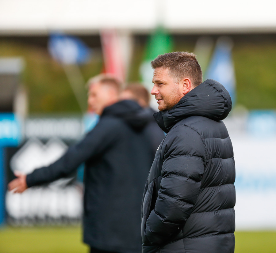 Skagamenn byrja á að lúðra boltanum upp og Arnór Snær fer í tæklingu og er tæklaður sömuleiðis af Arnþóri Inga rétt fyrir utan teiginn.