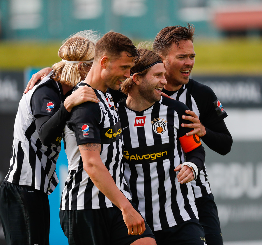 Óskar Örn tekur aukaspyrnuna og bombar í stöngina, boltinn hrekkur óvænt til Tobias sem heldur næstum í stöngina en setur boltann framhjá!!!