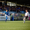 Hendrickx reynir fasta sendingu inná teig meðfram jörðina en sendingin fer í varnarmann og í fangið á Halla.