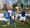 Ævar með stungu inná Sölva sem er aleinn en hann nær ekki að halda boltanum inná.