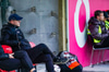 Hann var að biðja fólk um að þétta raðirnar í stúkunni enda er svakaleg mæting og langar raðir fyrir utan Víkingsheimilið. Þetta verður þrumustuð!