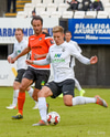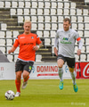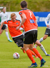 Brandur tekur hér hornspyrnu á kollinn á Björn Daníel sem skallar boltann yfir. Deja Vu.