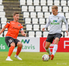 Ragnar Bragi fær hér gult spjald fyrir brot á Brandi og virkar ekkert alltof sáttur með það. Hefur nokkuð til síns máls þar sem að hann virtist bara ná boltanum.