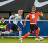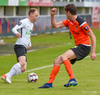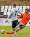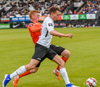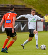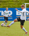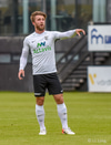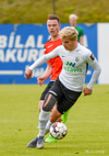 Björn Daníel nær skalla að marki eftir hornspyrnu Brands en hann fer beint á Stefán Loga í markinu.