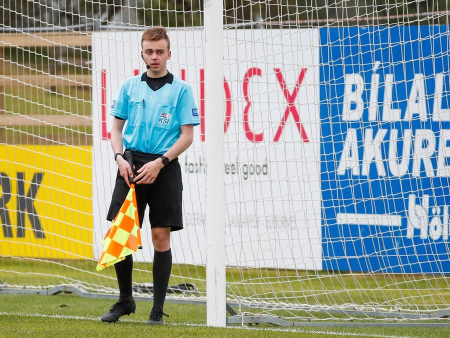 Áhugavert. Steinar dómari skokkar að varamannabekk Selfoss. Þar sýnist mér hann fá kælisprey á fótinn. Vonandi er hann í lagi því hér er enginn varadómari til staðar. Ekki einu sinni eftirlitsdómari.