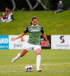 Dauðafæri en taugarnar eflaust þandar hjá leikmanninum unga.