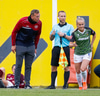 Allison liggur eftir, fékk boltann í höfuðið. Er vonandi í lagi. Búin að vera mjög kröftug.