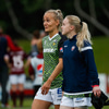 Neglir að marki, boltinn fer af Cassie og lekur í stöngina áður en Kelsey nær til hans. Þarna mátti engu muna.