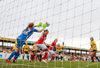 Andrea Rut tekur horn fyrir Þrótt og Margrét Sveins gerir sig líklega í tvígang. Fyrst bjarga Skagakonur á línu og Aníta ver svo seinna skot Margrétar.