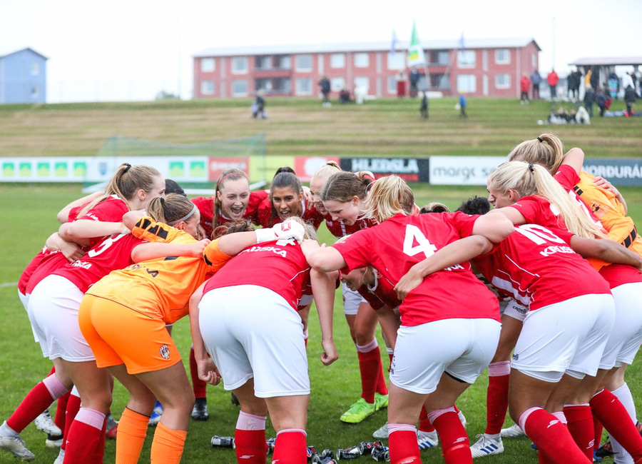 Þær spila með fimm manna línu. Þrjár þéttar á miðjunni og þær Eyrún og Erla Karitas eru fremstar.