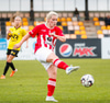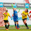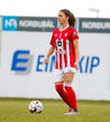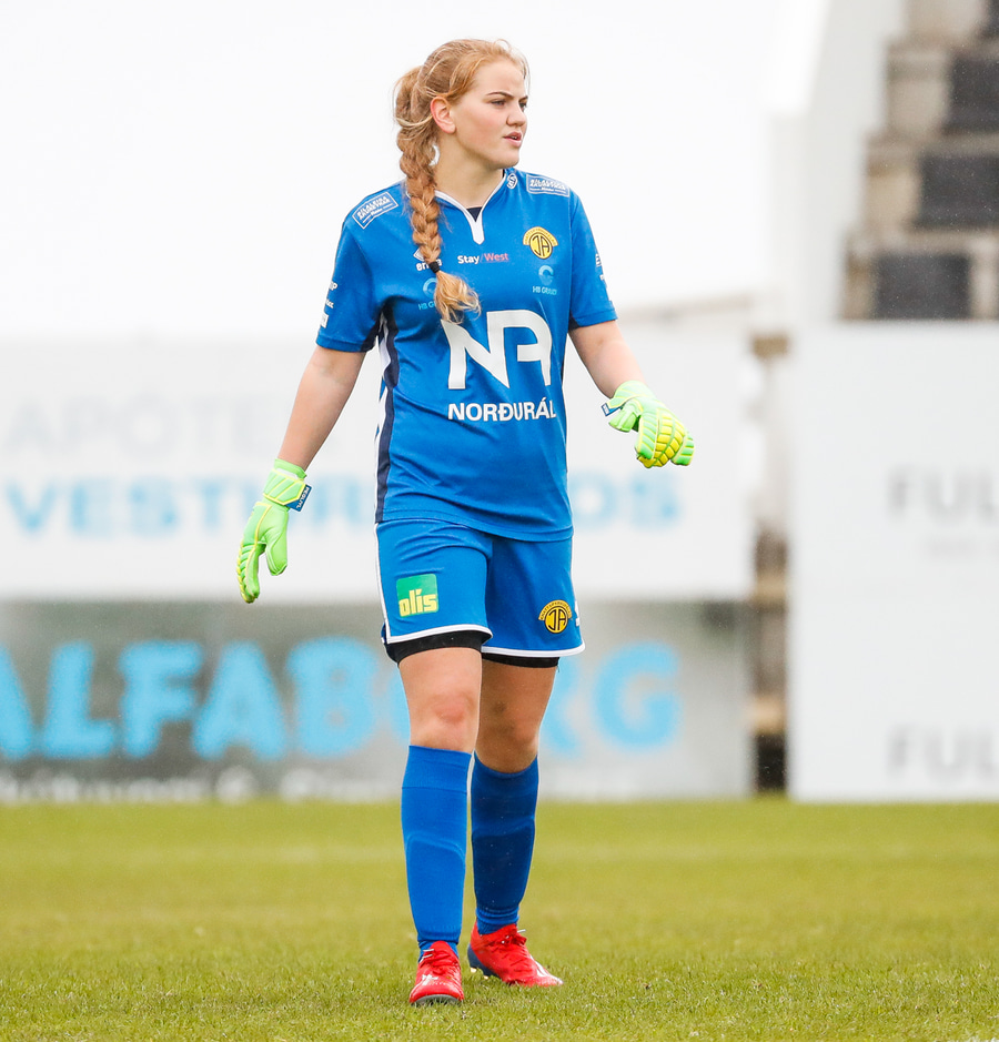 Fyrsta verk Þórkötlu Maríu í leiknum er að eiga þrumuskot að Skagamarkinu! Aníta ver vel.