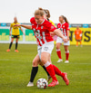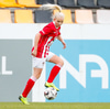Hún pressar á Sigmundínu, vinnur af henni boltann og sleppur í gegn. Er með fjóra varnarmenn á eftir sér en nær skotinu sem Friðrika gerir vel í að verja í horn.