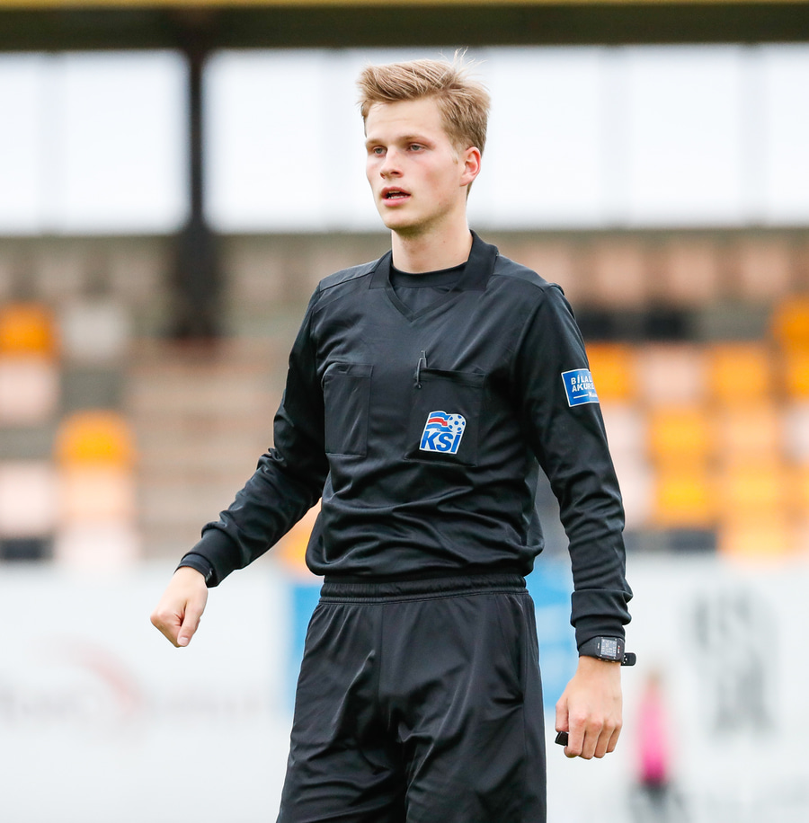 Gult á ÍA-bekkinn fyrir mótmæli. Mér heyrðist Aron Ýmir kalla en sýnist Unnar hafa fengið spjaldið.