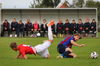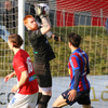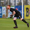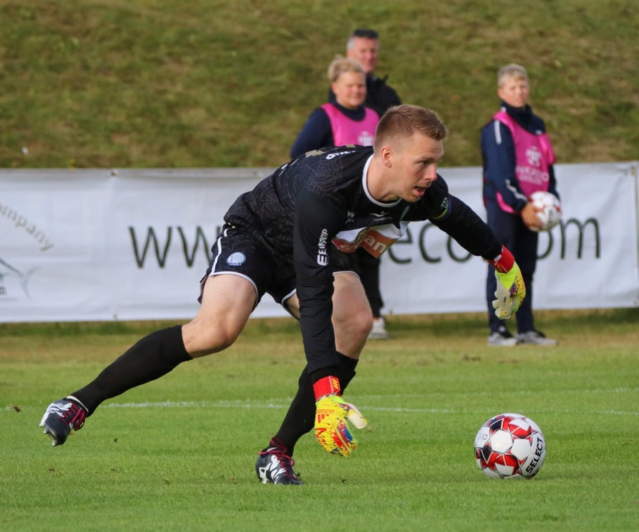 Eyjólfur Tómasson markvörður Leiknis að leika sér aðeins að eldinum! Tók hressan snúning í teignum og hreinsaði svo í innkast.