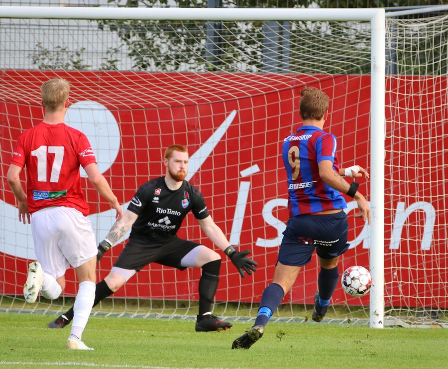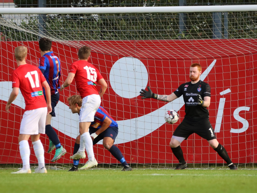 Hjalti með flott tilþrif og laumar boltanum á Sólon í teignum en Birgir Magnús með flottan varnarleik og kemur knettinum í horn.