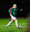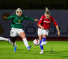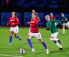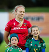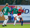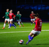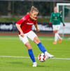 Alexandra sendir boltann fast fyrir og Elísa kixar hann í horn.