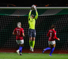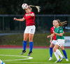 Spyrnan frá Selmu Sól er ágæt á fjær og Alexandra sýnist mér skalla framhjá.
