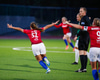 Hún rúllar boltanum upp í vinstra hornið á Fanndísi sem tapar boltanum og brýtur af sér... Illa framkvæmt hjá vinkonunum.