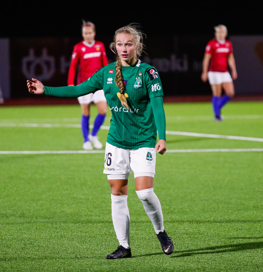 Agla María tekur enn eina afleita hornspyrnuna hér í dag... boltinn bara beint afturfyrir!