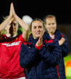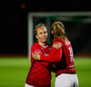 Agla tekur spyrnuna en Sandra blakar boltann frá, Agla nær honum aftur og sendir fyrir en Berglind skallar boltann bara upp og Sandra grípur.