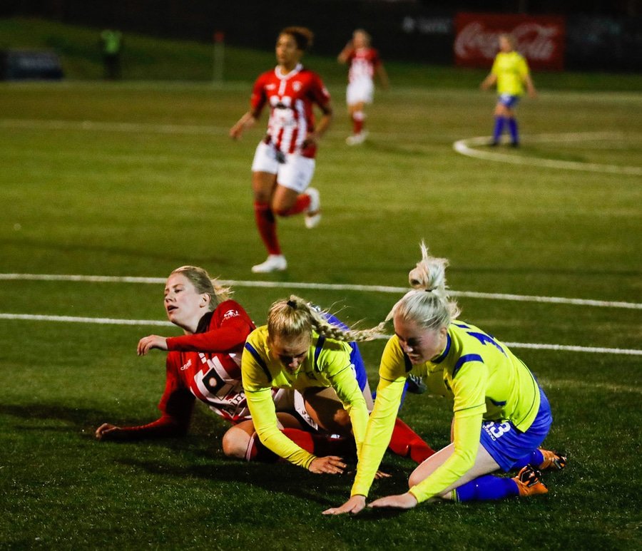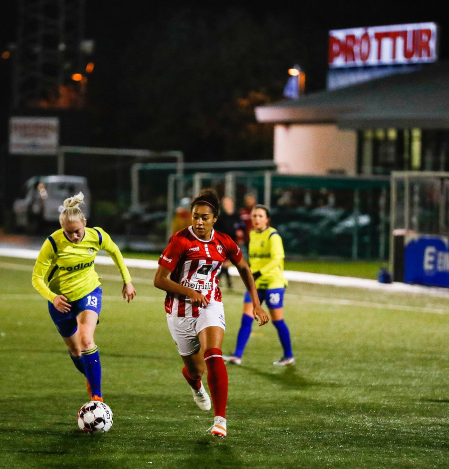 Linda Líf leggur upp enn eitt færið fyrir liðsfélagana en Lauren brennir af af markteig!