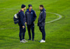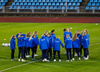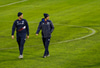 Úfff... eftir smá upphitun er völlurinn þegar orðinn mun verri! Afskaplega brúngrænn. Þetta verður ekki fagurt í kvöld. En endar vonandi með þremur stigum til Íslands!