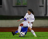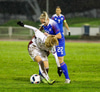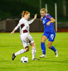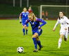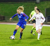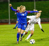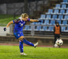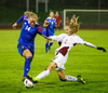 Margrét Lára með skot sem er varið. Ísland átt 25 marktilraunir samkvæmt tölfræði UEFA en Lettland 4 tilraunir.