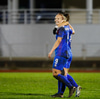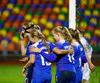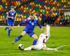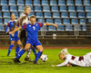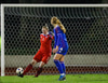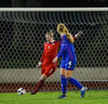 Fanndís skorar beint úr hornspyrnu. Marija Ibragimova lítur kjánalega út í markinu og kýlir boltann inn. Á barmi þess að teljast sjálfsmark.