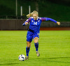 Hlín vinnur hornspyrnu. Hallbera mætir á vettvang til að taka hornið en fyrirgjöf hennar fer afturfyrir.