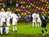 Styttist í leik. Leikurinn verður flautaður á klukkan 20:00 að staðartíma. Flóðljósaleikur og völlurinn er rennandi blautur. Það heldur áfram að rigna. Líklegt að þetta verði drullug barátta þegar upp verður staðið!