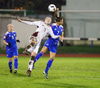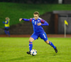 Fyrsta fyrirgjöf íslenska liðsins komin. Það verður mikið um fyrirgjafir í þessum leik samkvæmt leikplani Jóns Þórs. Markvörður Letta kýldi boltann í burtu.