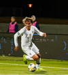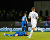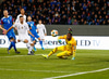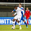 Boltinn dettur fyrir Jón Daða fyrir utan teig Frakkana, Jón fer framhjá tveimur og lætur vaða en Mandanda ver!