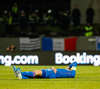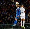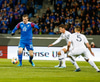 Matuidi neglir boltanum í andlitið á Guðlaugi Victori sem að hrynur í jörðina og fær aðhlynningu.