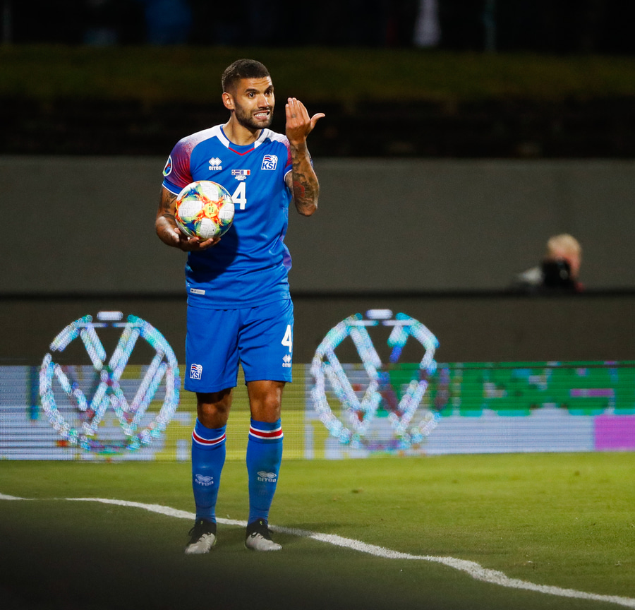 Athygli vekur að Guðlaugur Victor Pálsson er notaður í hægri bakverði í þessum leik.