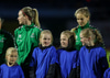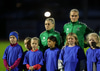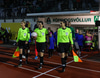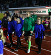 Liðin eru mætt til vallar. Hafa heilsast og stilla sér nú upp fyrir liðsmyndatökur.